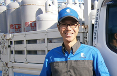 現在は座間事業所で厚木エリアを中心に、一般家庭や業務用店舗向けにプロパンガスの配送業務を担当している。